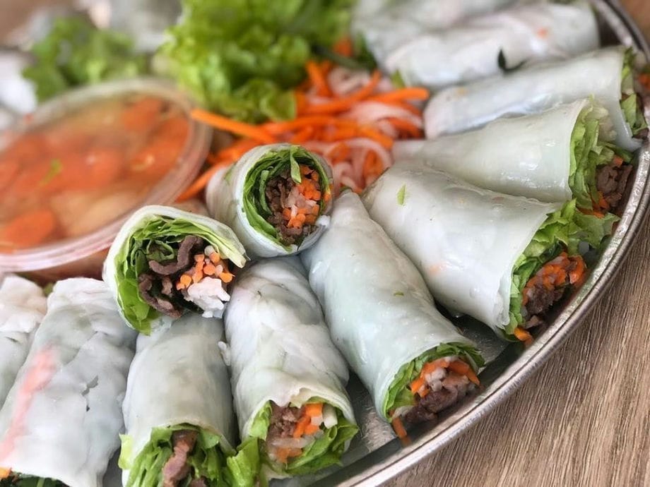 Il Banh Cuon è un panino di riso al vapore con carne di maiale macinata, funghi e scalogno tritato. Questi sottili involtini di riso vengono serviti con salsa di pesce, zucchero e salsa di succo di lime. Questo street food di Hanoi è una scelta popolare per la colazione ad Hanoi e può essere trovato in quasi tutti i quartieri.