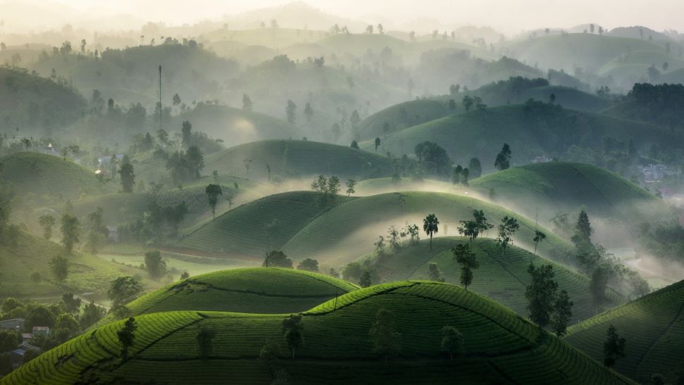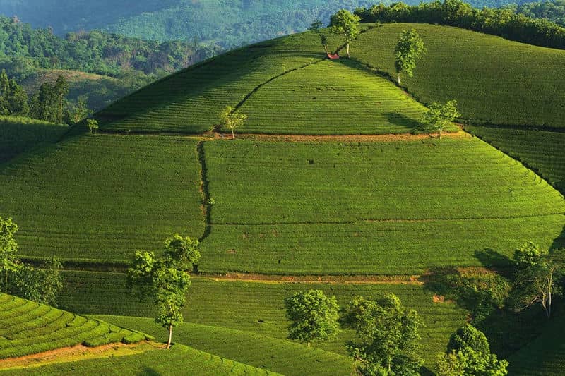 Con un vasto colore verde che si estende attraverso le colline del tè, questo sarà uno sfondo perfetto per foto di check-in bellissimo. L'alba è il momento ideale per catturare meravigliose immagini delle colline del tè. In questo momento, le colline del tè sono coperte di nebbia, le gocce di rugiada mattutina sono come perle sulle foglie, si intrecciano con un po' di luce solare all'inizio del nuovo giorno, creando una scena onirica come un quadro di paesaggio, bella come un paese fatato scena.