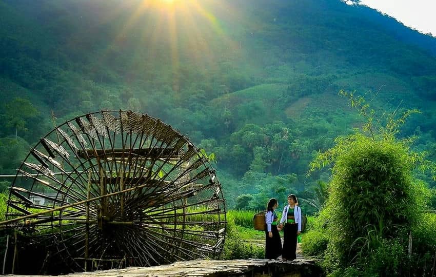 Dopo aver ammirato la bellezza della collina del tè Long Coc, dovresti continuare il tuo viaggio alla scoperta della bellezza naturale e dell'unicità della cultura etnica Muong e Dao nel comune di Kha Cuu. Questa è la residenza di molte comunità etniche Muong e Dao. Camminando lungo i ruscelli, vedrai facilmente le ragazze Muong e Dao che attraversano i ruscelli. Portano sulle spalle pesanti cesti di riso dorato, con un sorriso caloroso sulle labbra.