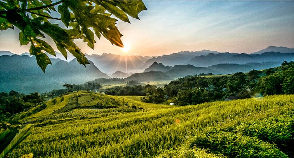 Vuoi diventare verde in un paesaggio rurale, calmo e dolce? Consigliamo la riserva naturale di Pu Luong. Consiste di due colline parallele e una profonda valle tra di loro, che lo rende una bellissima destinazione per il trekking in Vietnam. Qui troverai terrazze di riso, montagne calcaree e percorsi di trekking che le attraversano. E se vuoi goderti una luce speciale, esplora questi sentieri escursionistici di notte al chiaro di luna.