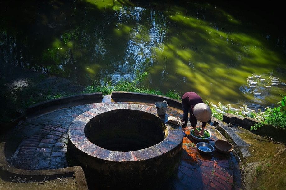 Come gli alberi banyan, le case comuni e i pozzi sono considerati l'anima di molti villaggi vietnamiti. Viaggiando verso l'antico villaggio di Duong Lam, puoi vedere molti pozzi antichi. L'acqua qui è molto limpida ed è anche il luogo in cui le persone prendono l'acqua per le attività quotidiane. Dopo centinaia di anni, gli antichi pozzi del villaggio di Duong Lam sono ancora intatti ed estremamente robusti.