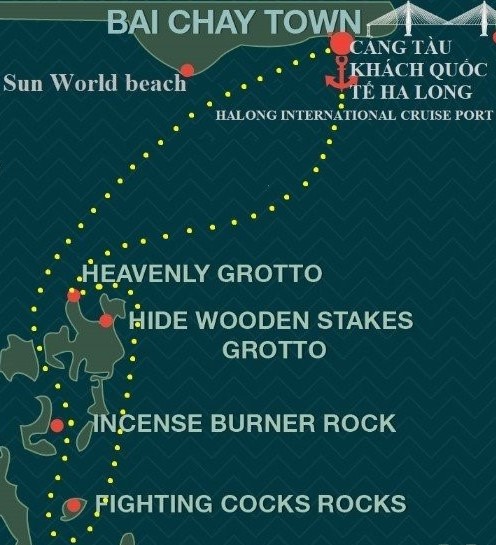 Intorno alle 7:00 - 7:30 (mattina): Verrai prelevato dall'autista al tuo albergo nella zona di Bai Chay a Halong (o prima se il punto di partenza è la capitale Hanoi) per trasferirti al Porto navale Internazionale di Halong. Allora verrai guidato attraverso le procedure per entrare alla nave da crociera.